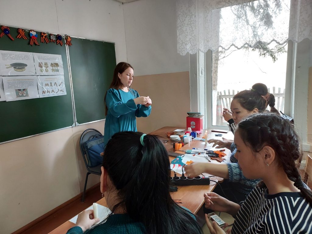 29.04.2023г прошел Мастер-класс на тему: изготовление георгиевской ленточки ко Дню победы в технике канзаши. Ответственный педагог ДО: Константинова Татьяна Юрьевна. Охват: 7 человек, 3 педагога и 4 обучающихся.