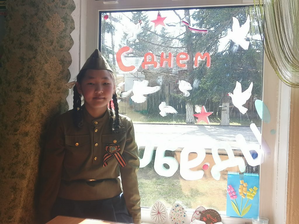 ЦДТ «Олчей удазыны» присоединился к Всероссийской акции «Окна Победы» целью которой, выступает создание атмосферы праздника, передача молодому поколению традиций, выражение благодарности героям Великой Отечественной войны, почитание памяти об ушедших ветеранах. Оформление окон символами мира и добра, заставляет вспомнить: какой ценой было завоевано счастье и возможность жизни и созидания под мирным небом!