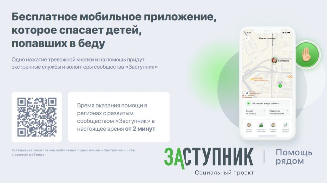 Официальный сайт социального проекта «Заступник» размещен по ссылке Заступник – приложение для оперативной помощи детям (zastupnik.help)