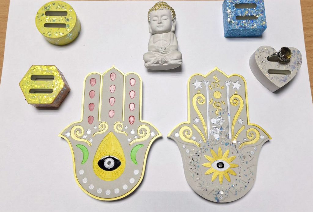 Педагоги научили родителей работать в технике декупаж, картонаж, изготовление декоративных кисточек, роспись и декорирование глиняных фигур.
