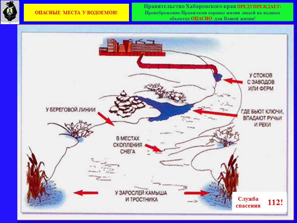 - Лед непрочен в местах быстрого течения, бьющих ключей и стоковых вод, а также в районах произрастания водной растительности, вблизи деревьев, кустов и камыша.