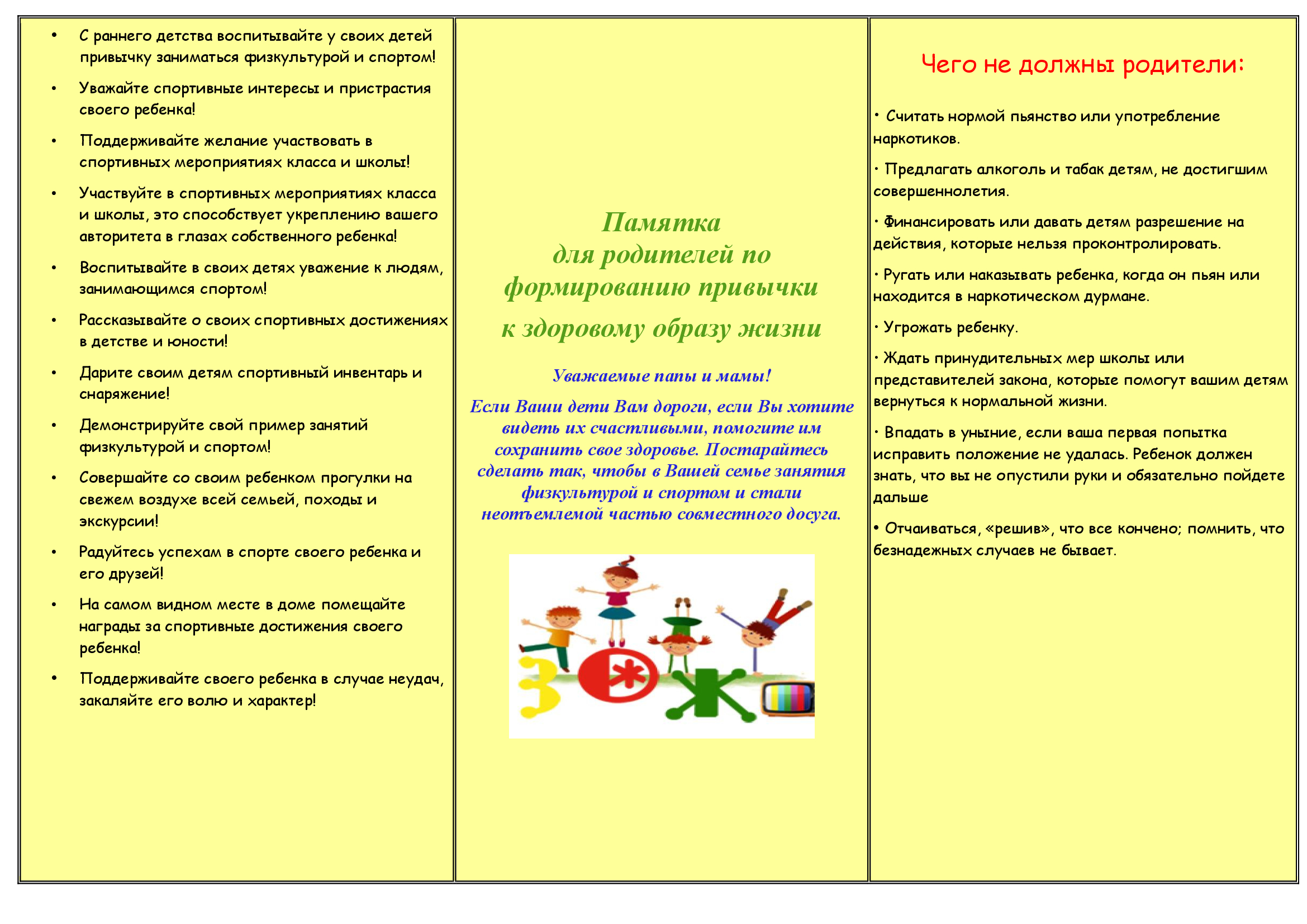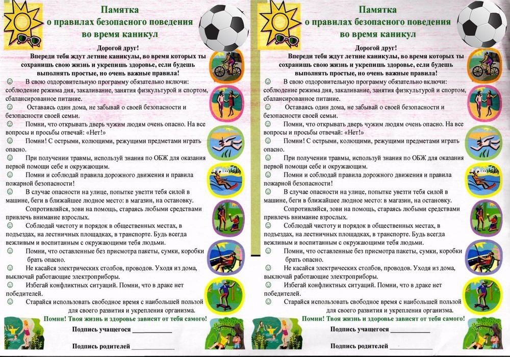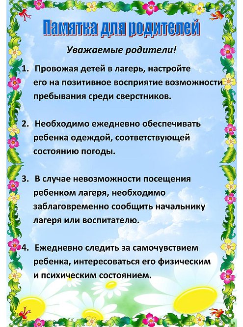 Памятки для родителей и воспитанников лагеря
